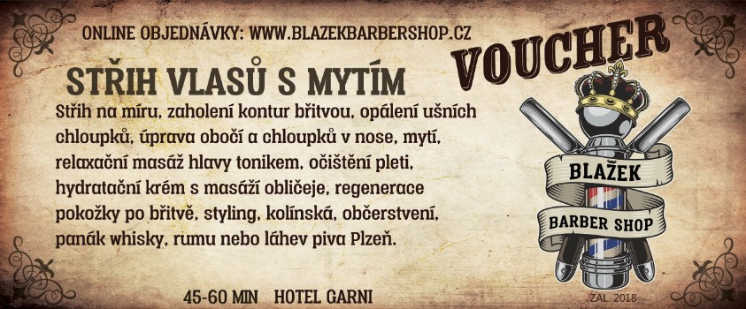 K zakoupení jsou poukazy pouze na online rezervace, na níže určené služby. Poukaz si můžete zakoupit přímo u nás v Barber Shopu. Nebo si objednejte digitální verzi, formulář níže. Platnost poukazu je 6 měsíců.